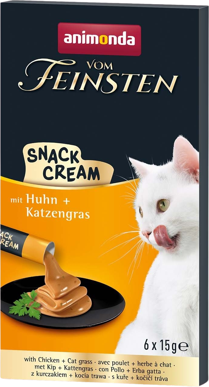 Vom Feinsten Adult Creme is an absolute treat for all gourmets. This creamy snack not only delights with chicken flavour but also with the irresistible cat grass.