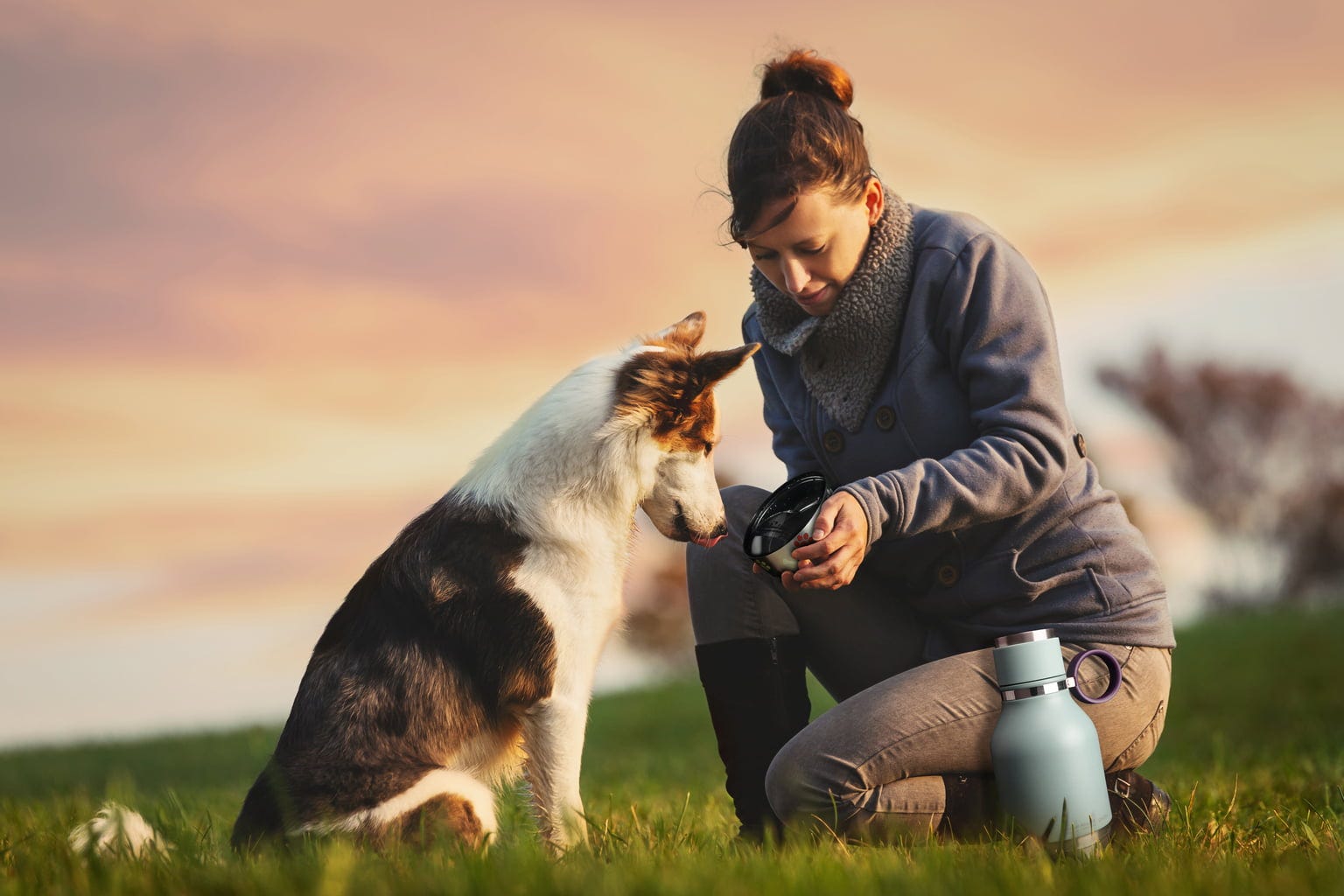 - Water bottle & dog bowl