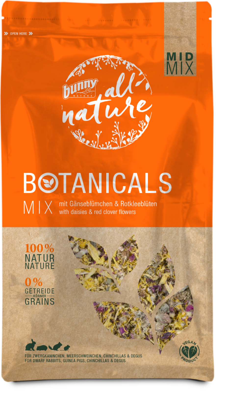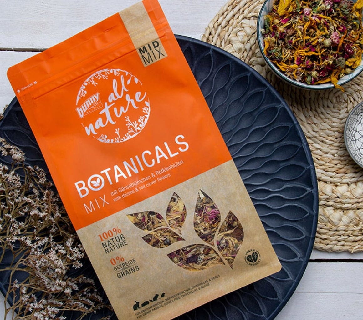 This colourful mix consists of a variety of selected components that are not only irresistibly tasty but also provide a high-quality supplement to your pet's daily diet. Serve the mix as a snack or combine it with the bunny Botanicals Maxi Mix to create a unique complete pet food.