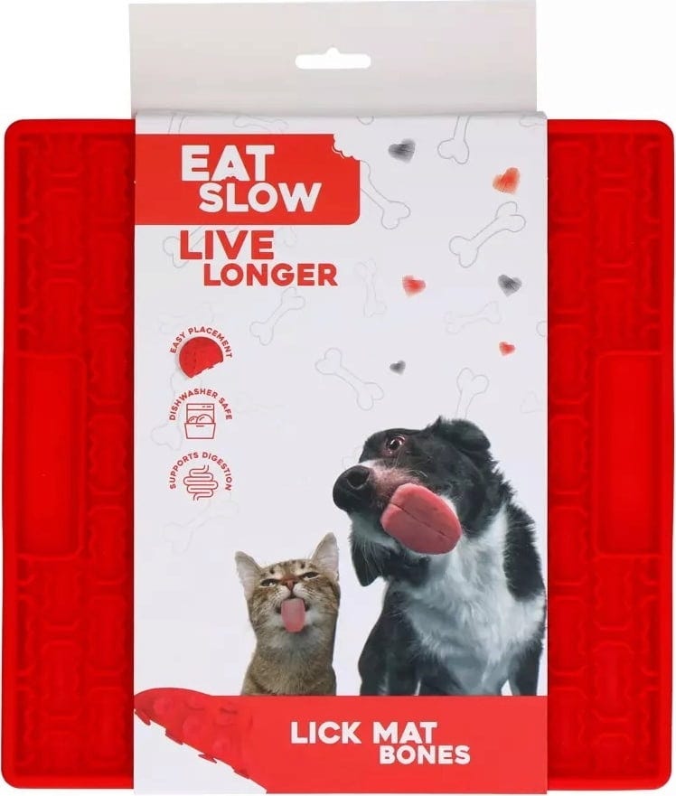 Eat Slow Live Longer Lick Mat Bones, Red