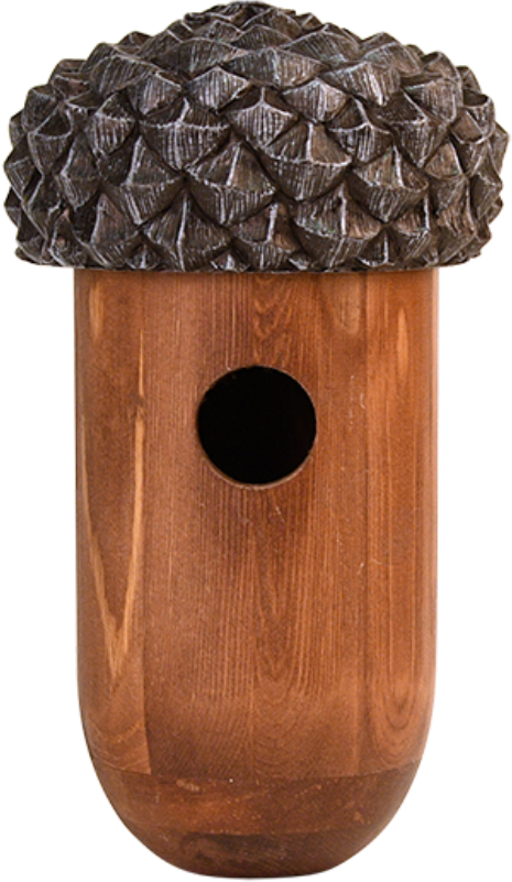 This charming nesting box is particularly suitable for wrens and festures a pretty acorn design. It is an ideal way to support the population of this bird in your area. In winter, this beautiful home is also often used as a shelter.