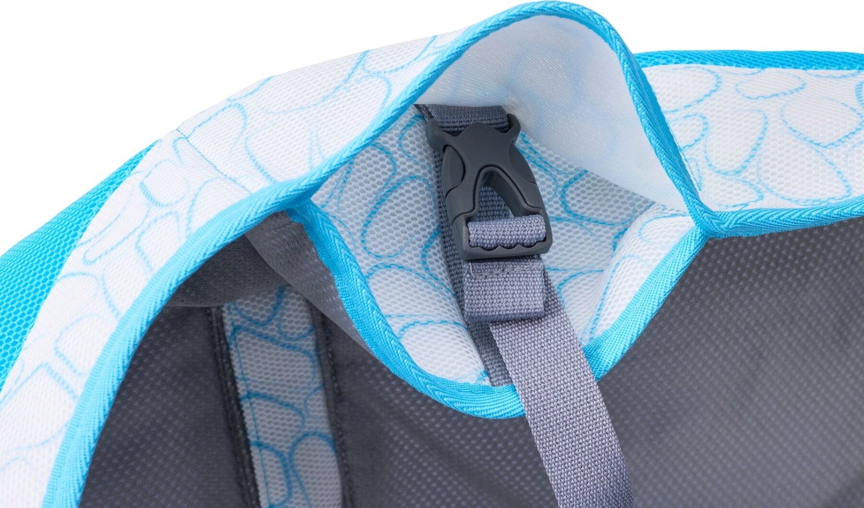 The vest is based on the Swamp Cooler™ technology developed by Ruffwear. This ensures that heat is effectively dissipated from the body core through the special material. The soft inner layer of the vest made of mesh fabric ensures high wearing comfort and a pleasant dry feeling. While the middle layer sustainably stores the cooling water, the breathable material of the outer layer facilitates its evaporation.