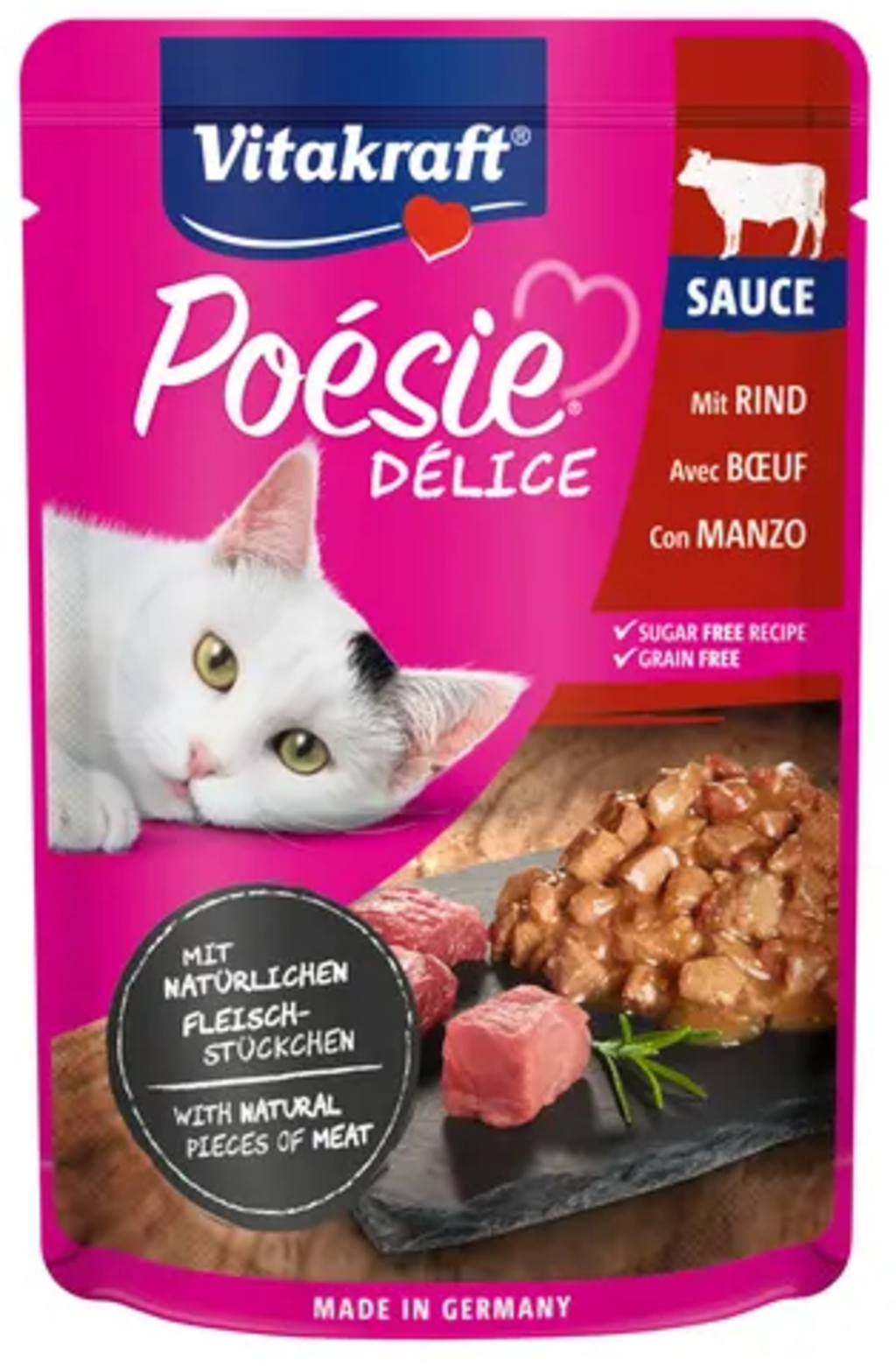 Vitakraft Poésie® Délice Sauce + Wet Cat Food, Beef (85 g)