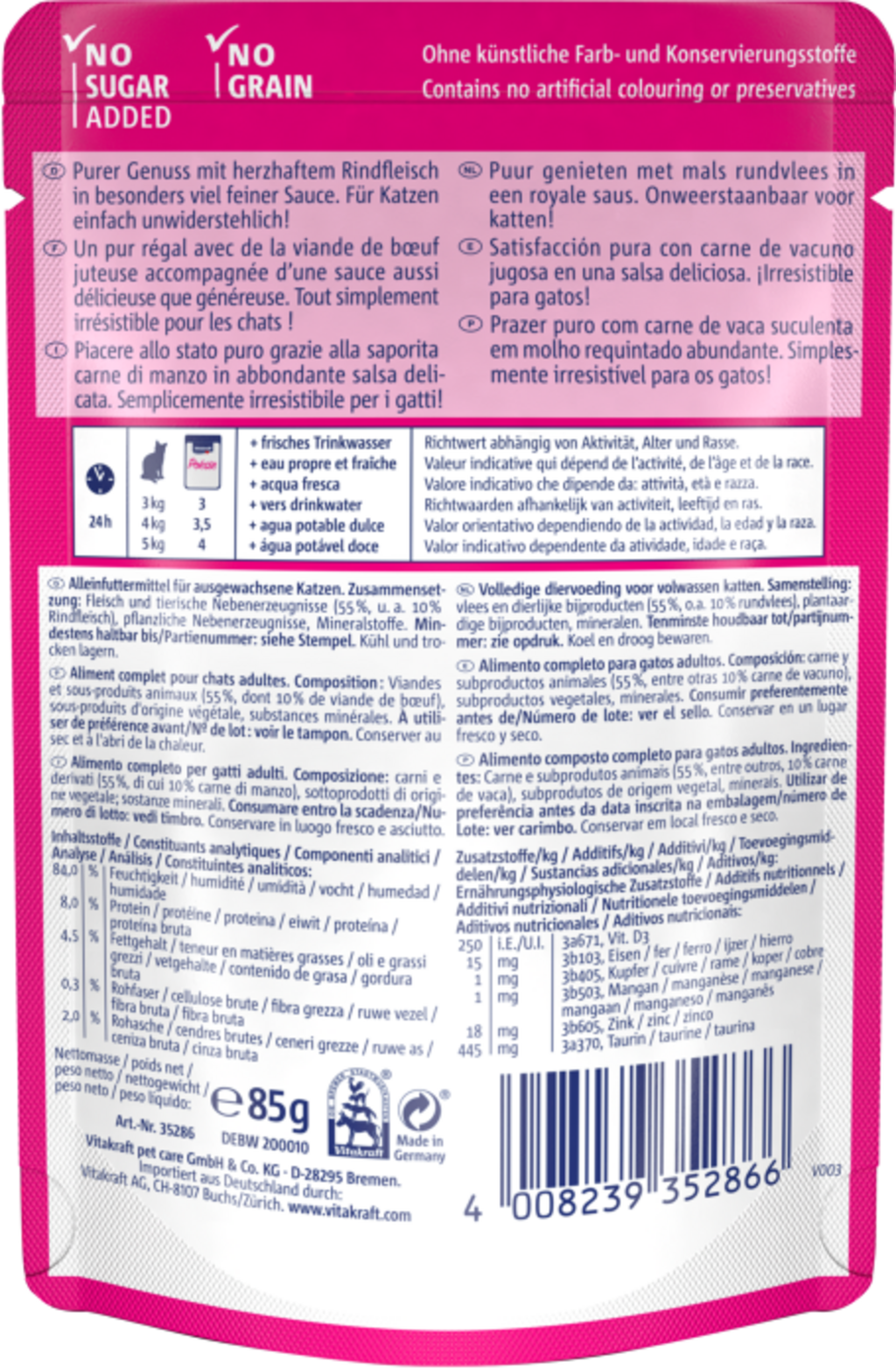 This high-quality wet food provides cats with a species-appropriate nutritional basis for a vital life, while also pampering them with selected ingredients and a delicious flavour.