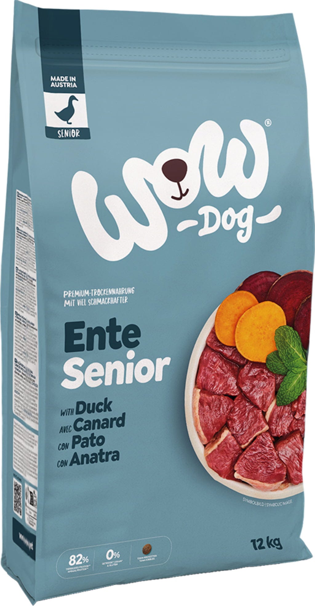 WOW SENIOR Duck with Mint offers your senior dog (10 years and older) a delicious combination of fine meat and select ingredients. This dry food combines dried duck with easily digestible components such as sweet potatoes and potatoes. The recipe is further enhanced with refreshing peppermint, beetroot, cranberry, and green-lipped mussel powder, promoting natural palatability.